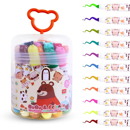 24 Colors Washable Watercolour Marker Set – Kids Painting Brush Pens
